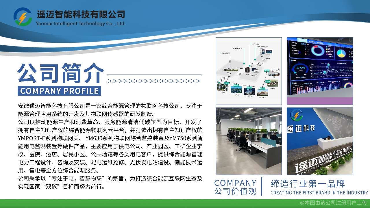 安徽遥迈智能科技有限公司是一家专注电力能源物联网研发、制造与运营的科技公司,为用户提供变电站托管运维、供电配套建设、分布式能源并网、储能技术运用等全方位的综合能源服务,运用物联网、大数据、云平台、人工智能等技术手段将传统电力行业互联网化。公司积极响应国家节能减排、绿色能源的号召,力争成为电力行业领先的“互联网+”智慧能源高科技企业。