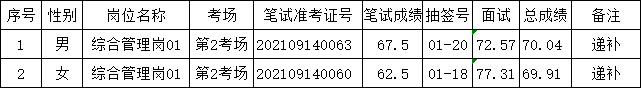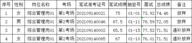 根据《肥东县张集乡2021年公开招考村级后备干部公告》(2021-09-14)相关要求,经过现场报名、资格审核、笔试、面试、体检等程序,由于以下2名考生体检放弃。递补2名考生体检放弃。