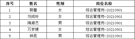 公示5天(2021年10月11日-2021年10月15日),如对上述人员有异议,请以书面形式向远创人力资源管理集团有限公司反映。