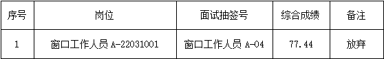根据《肥西县数据资源局2022年公开招聘政务大厅税务窗口工作人员公告》(2022-03-04)的规定,经过网上报名、资格初审、笔试、资格复审、面试、体检、政审等程序,由于以下1名考生自愿放弃