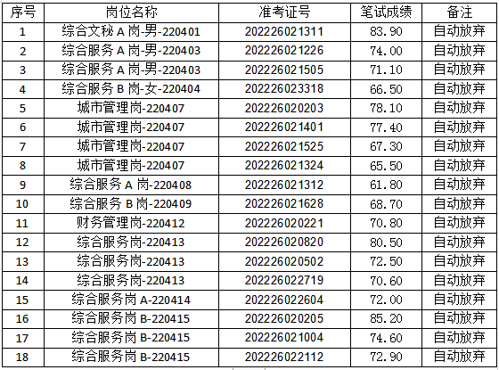 根据《合肥市蜀山区2022年政府购买服务岗位招聘公告》(2022-04-02)的规定,资格复审已结束,因个人原因自动放弃、资格复审不合格或未在规定时间、地点参加资格复审的,其放弃人员如下:
