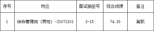 根据《长丰县吴山镇2021年公开招考村级后备干部公告》(2021-07-20)的规定,经过网上报名、资格初审、笔试、资格复审、面试、体检政审等程序,由于以下1名考生离职