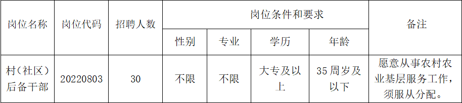 5.自愿从事农村农业基层服务工作,身体健康,乐于奉献,吃苦耐劳,办事公道,事业心责任感强,具备正常履职能力,须服从组织分配;