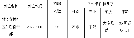 2.薪酬待遇:工资待遇参照现行的村(农村社区)后备干部标准执行。