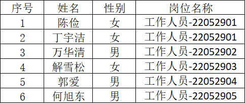 根据《肥西县花岗镇2022年公开招考村级后备干部公告》(2022-05-28)相关要求,经过网上报名、资格初审、笔试、资格复审、面试、体检、政审等程序,现将拟聘人员名单公示如下。
