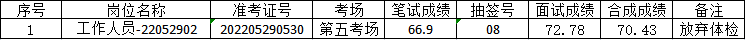 根据《肥西县花岗镇2022年公开招考村级后备干部公告》(2022-05-28)的规定,经过网上报名、资格初审、笔试、资格复审、面试、体检等程序,由于以下1名考生自动放弃体检: