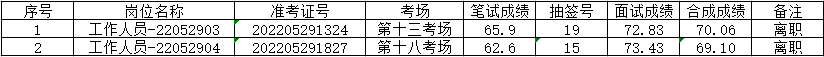根据《肥西县花岗镇2022年公开招考村级后备干部公告》(2022-05-28)的规定,经过网上报名、资格初审、笔试、资格复审、面试、体检等程序,由于以下2名考生自动离职: