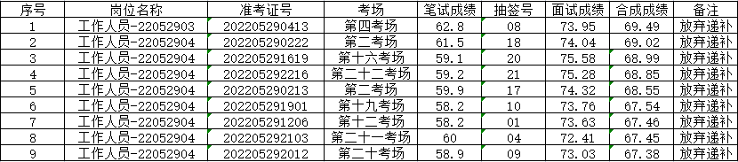 故最终递补人员如下: