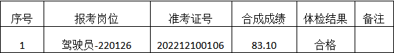2022年12月29日,肥西县2022年急救中心和部分公立医院面向社会公开招聘专业技术人员(220126岗位)(准考证号202212100106)进行体检复查,现将体检结果进行公示