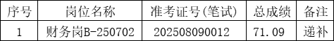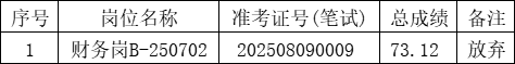 根据《合肥新亚新兴能源有限公司招聘5名财务人员》(2025-07-23)公告规定,经过报名、资格初审、笔试、资格复审、面试、体检等程序,由于以下1名考生放弃入职: