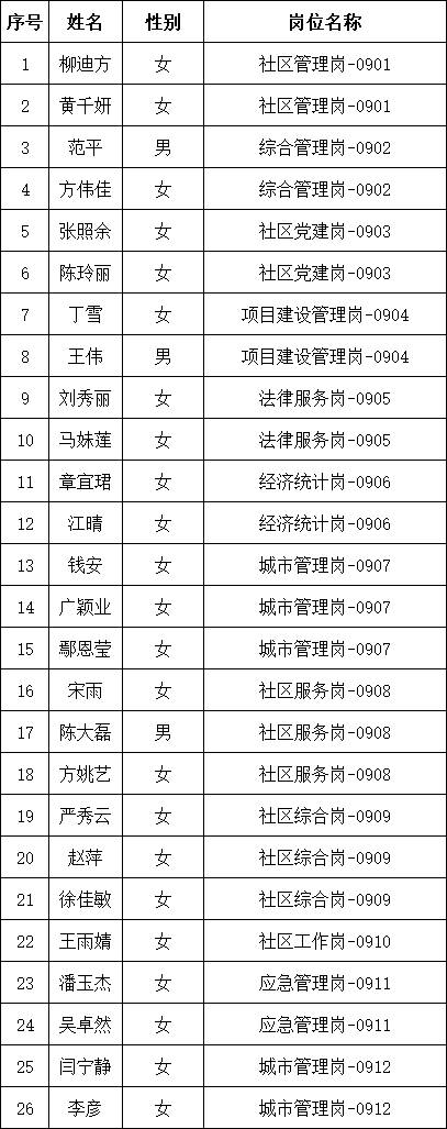 根据《蜀山区2025年社区工作者招聘公告》(2025-09-24)的规定,经过网上报名、资格初审、笔试、资格复审、面试、体检和考察。现将拟聘人员名单公示如下: