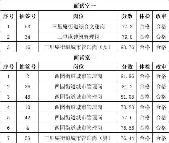 蜀山区补录政府购买服务岗位人员体检、考察结果通知